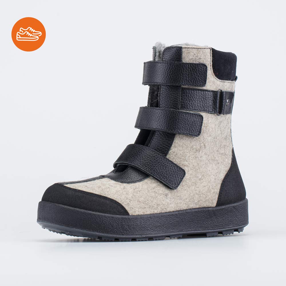 Носочная и пяточная части защищены кожаными накладками с полиуретановым покрытием. Они предохраняют войлок от влаги и реагентов.