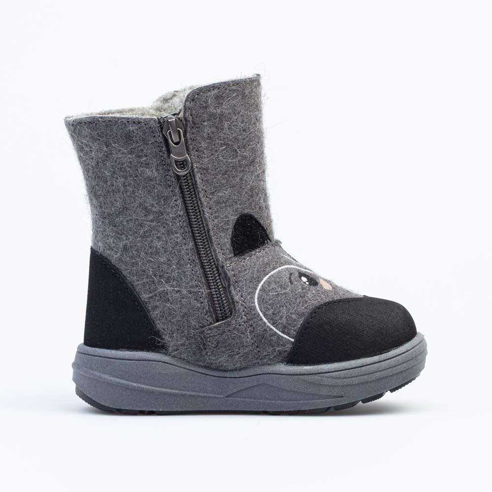 Войлок плотный, с водоотталкивающими свойствами. Он надежно сохраняет тепло, дышит и создаёт приятный микроклимат вокруг стопы. Носок и пятка защищены кожаными накладками с ПУ-покрытием, которые предохраняют от влаги и реагентов.