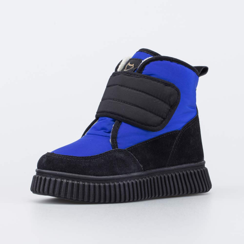 Зимние ботинки-дутики выполнены в синем цвете и предназначены для малышей, которые только начинают ходить.