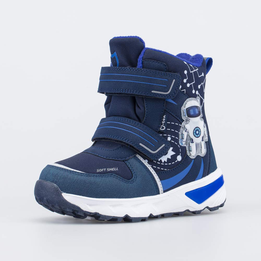 Синие мембранные ботинки для мальчика ясельного возраста выполнены с применением технологии SoftShell.