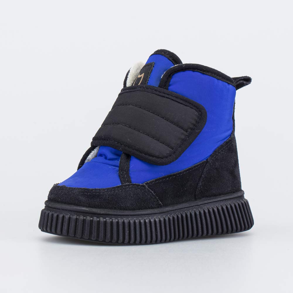 Зимние ботинки-дутики выполнены в синем цвете и предназначены для малышей, которые только начинают ходить.