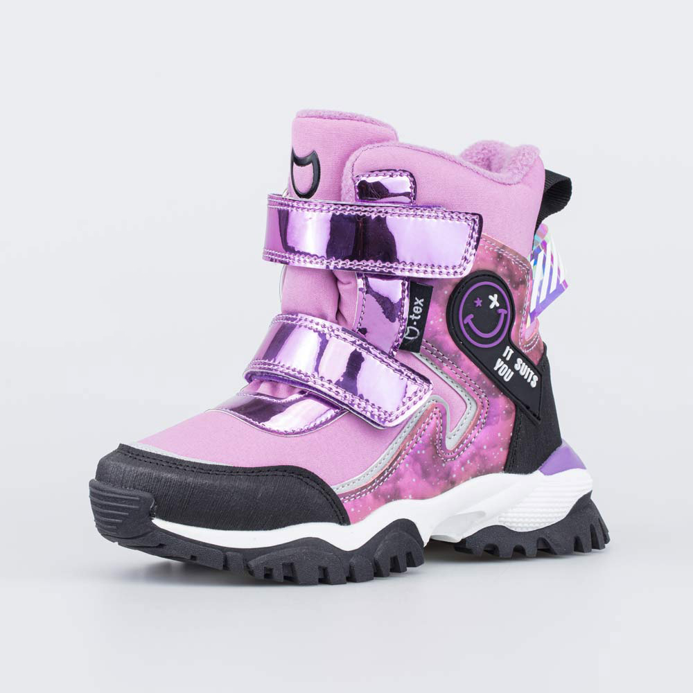 Спортивная подошва с высоким протектором учитывает особенности детской ножки и имеет хорошую устойчивость на зимних покрытиях.