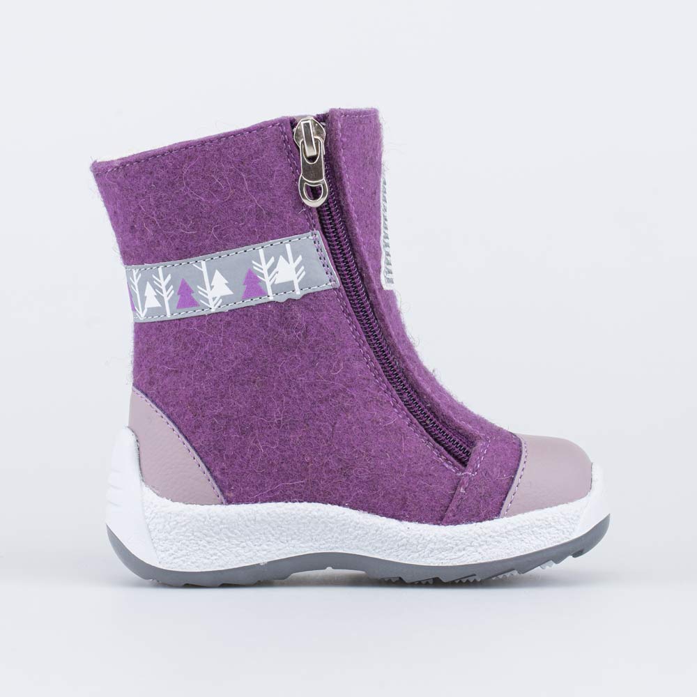 Модель анатомически правильная: имеет небольшой каблучок/танкетку, в меру жёсткий задник и круглый носок. Стелька из натуральной шерсти приформовывается к своду стопы, таким образом создавая индивидуальную анатомическую форму внутреннего пространства в обуви, подходящую только вашему ребенку. Это положительно влияет на правильное развитие стоп и всего опорно-двигательного аппарата.