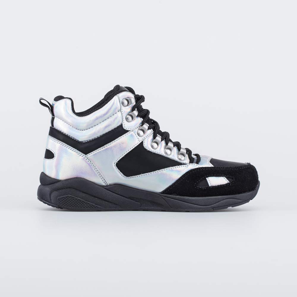 Мембранные ботинки, выполненные в сочетании черного с серебром, подходят для девочки подросткового возраста.