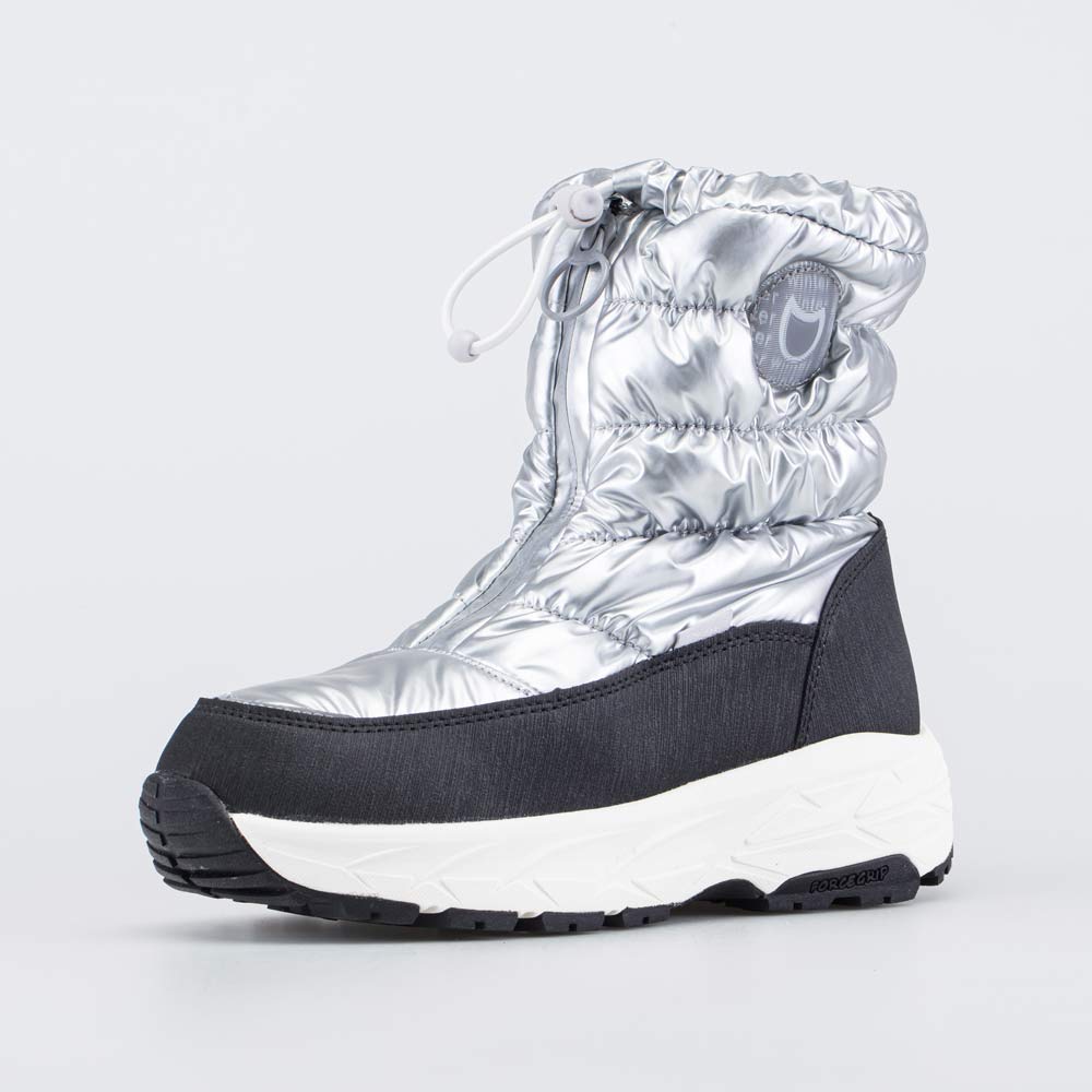 Молния, расположенная спереди, позволяет быстро обуваться и разуваться, а шнурок с утяжкой предотвращает попадание внутрь влаги или снега.