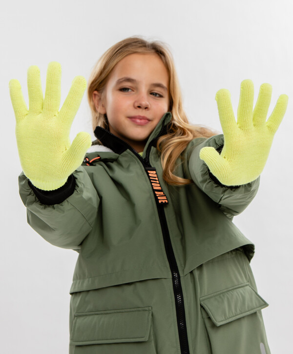 цветЗеленый90% акрил/10% нейлон Шерсть/Акрил Перчатки вязаные для девочки салатовые Button Blue