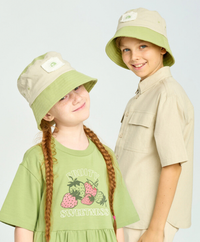 цветБежевыйверх:100% хлопок; подкладка:100% хлопок Хлопок Панама детская с завязками на утяжке и вышивкой белая Button Blue