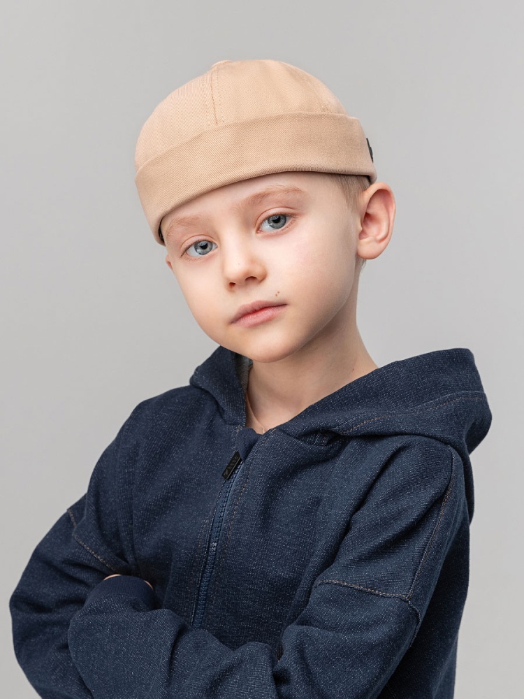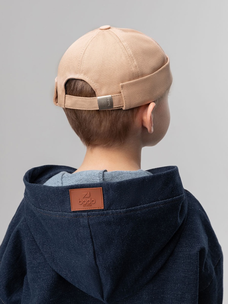 Материал твил Состав 100% хлопок Бейсболка без козырька – докер, материал изделия твил. Форма шапка бини, классическая шестиклинка. На отвороте из основного полотна располагается фирменная нашивка 1,5*3, ремешок с пряжкой и логотипом bodo.