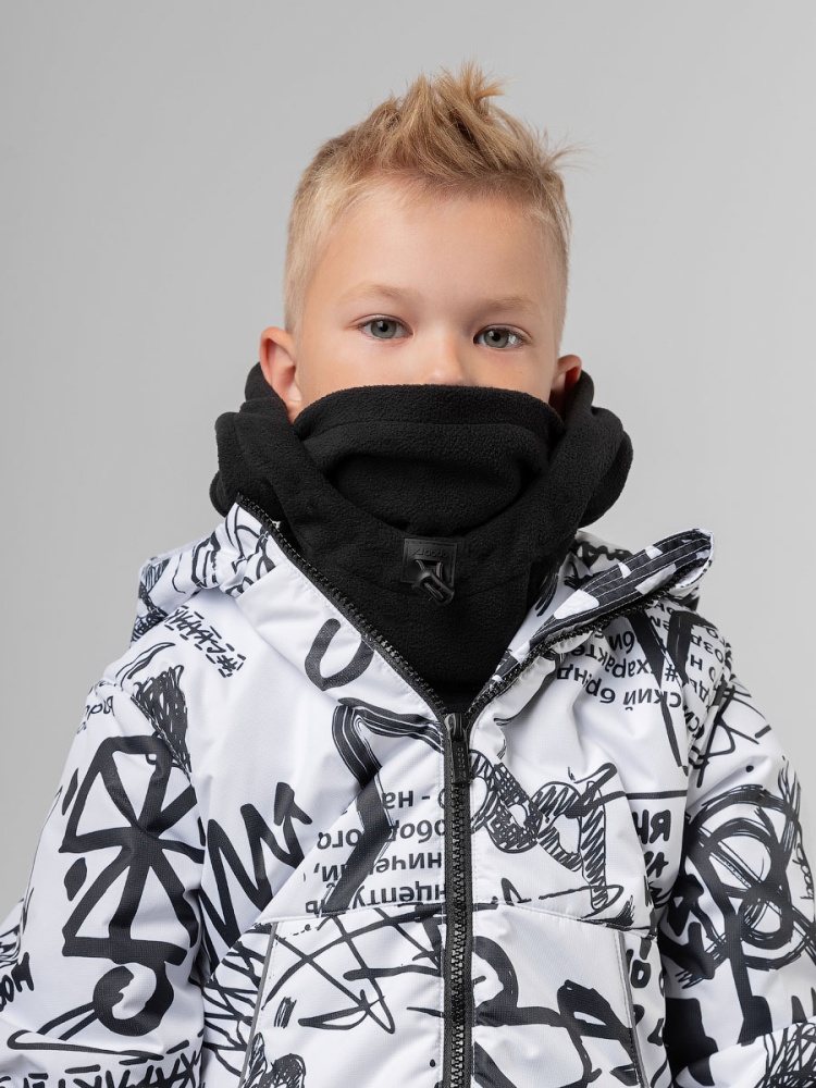 Материал флис Состав 80% полиэстер 20% хлопок Стильная шапка-капюшон утепленный с хлопоковой подкладкой. Благодаря удлиненной манишке сочетает в себе тёплую шапку и шарф, плотно садится по голове ребёнка и закрывает уши. Подходит для весны/осени. Состав: флис 80% полиэстер 20% хлопок