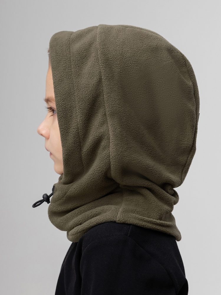 Материал флис Состав 80% полиэстер 20% хлопок Стильная шапка-капюшон утепленный с хлопоковой подкладкой. Благодаря удлиненной манишке сочетает в себе тёплую шапку и шарф, плотно садится по голове ребёнка и закрывает уши. Подходит для весны/осени. Состав: флис 80% полиэстер 20% хлопок