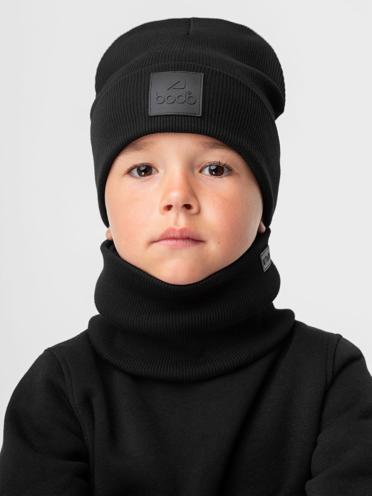 Комплект (шапка, снуд) с ПВХ нашивкой 13-162MU; черный