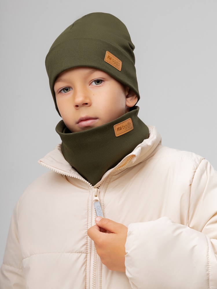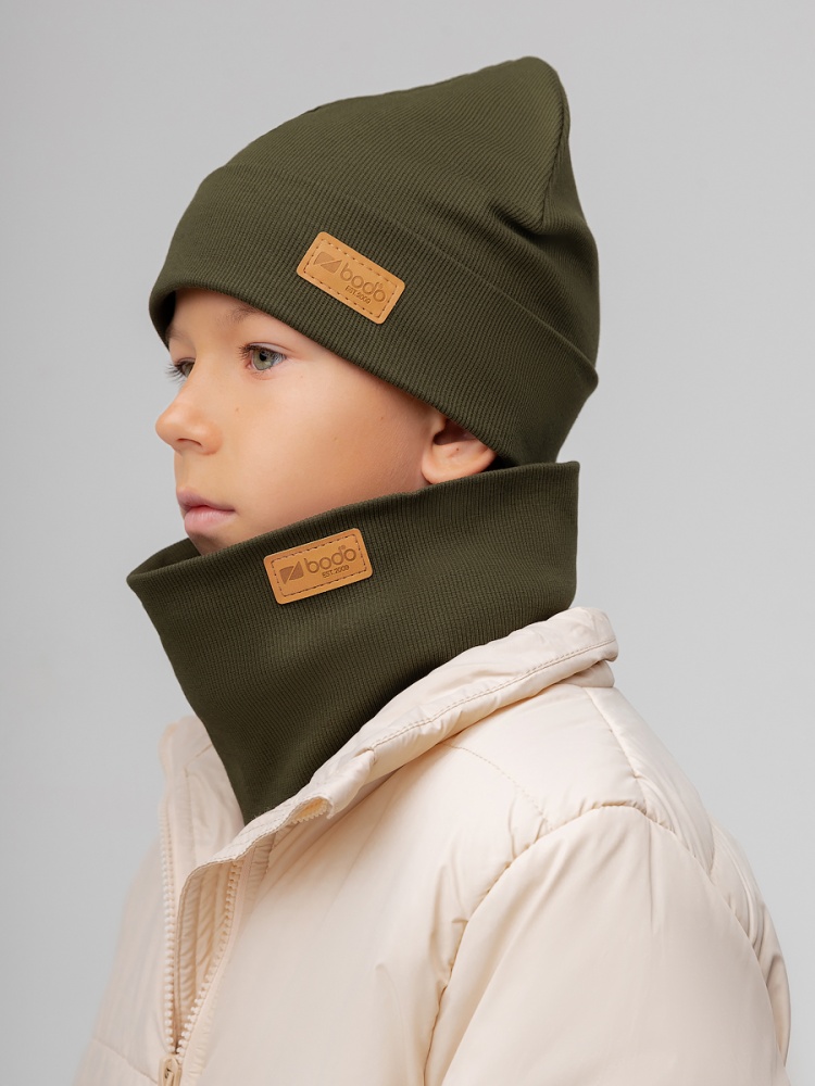 Комплект (шапка, снуд) с кожзам нашивкой 13-201MU; хаки