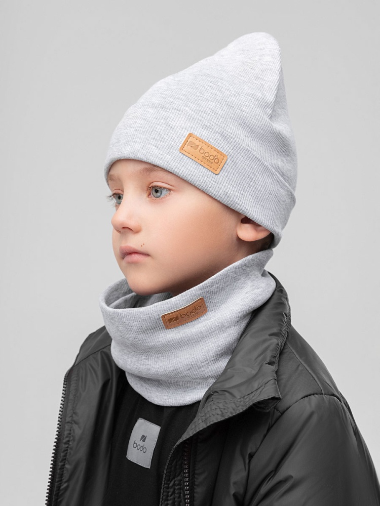 Комплект (шапка, снуд) с кожзам нашивкой 13-201MU; серый меланж