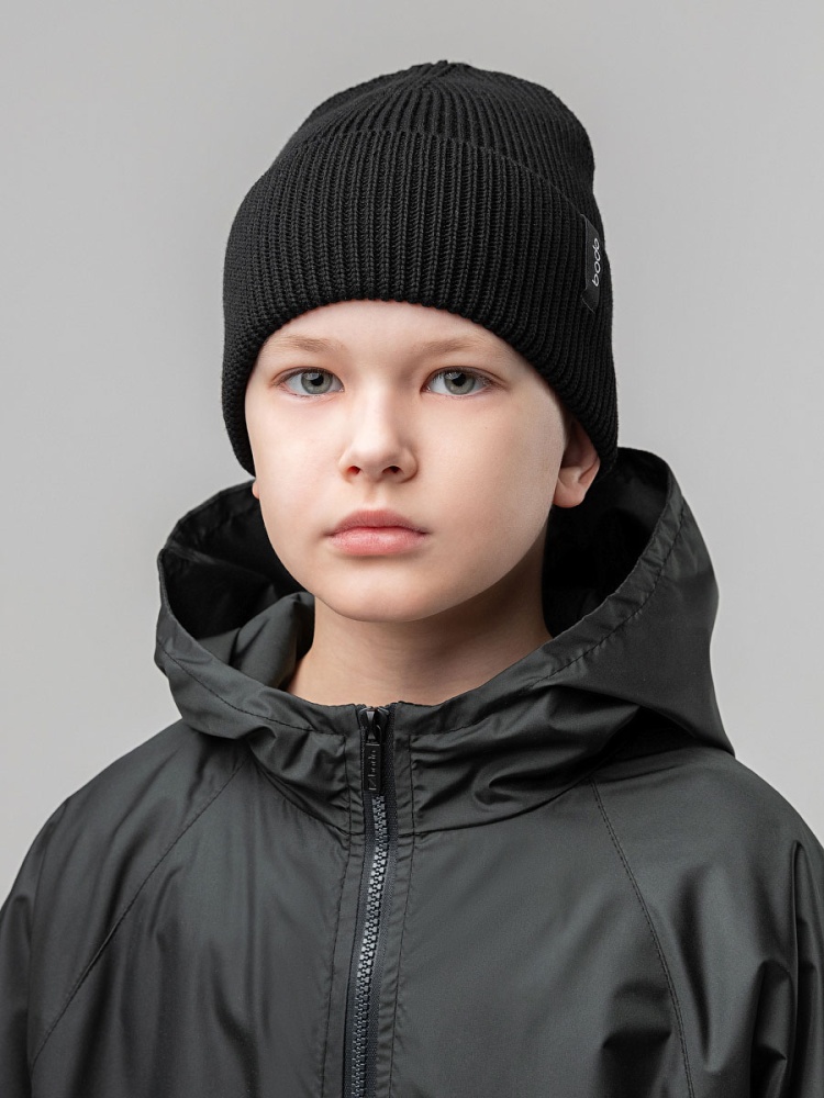Шапка вязаная с жаккардовой нашивкой 10-415MU; черный
