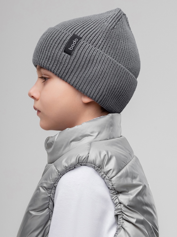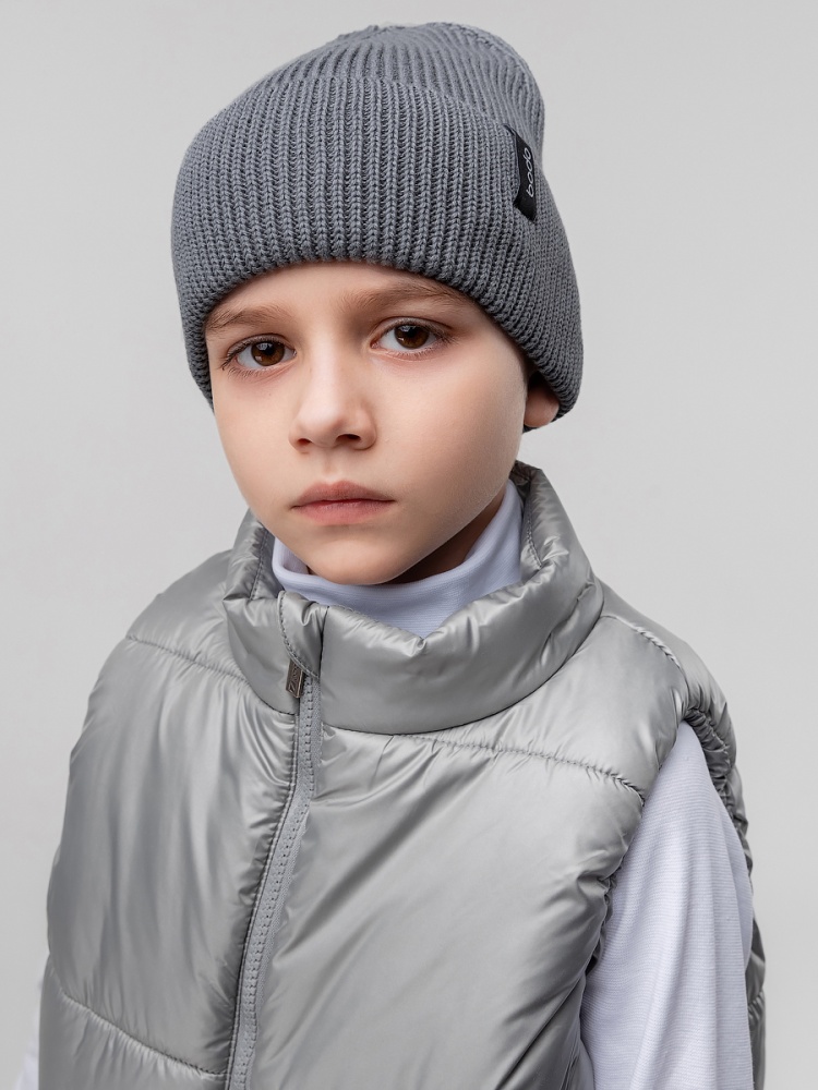 Шапка вязаная с жаккардовой нашивкой 10-415MU; серый