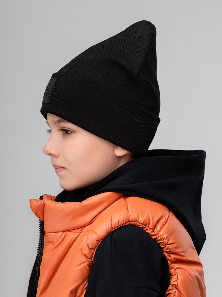 Шапка в рубчик с ПВХ нашивкой 10-417MU; черный