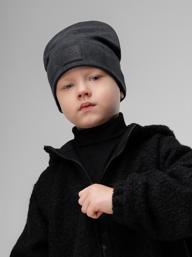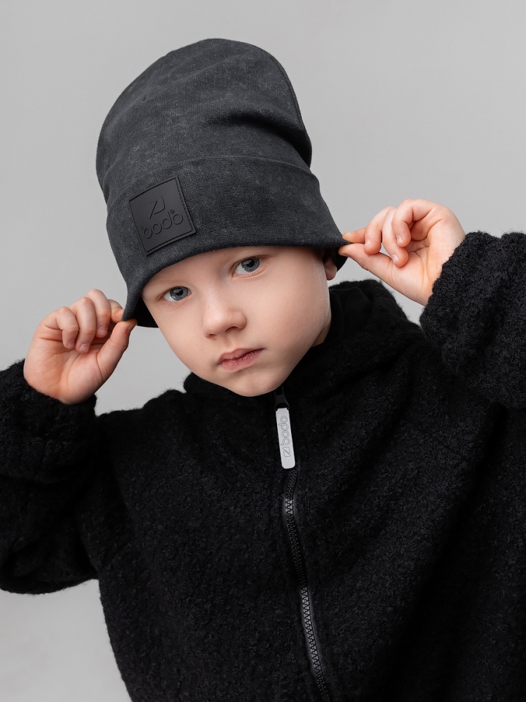 Шапка двойная с отворотом 10-420MU; графит (черный)