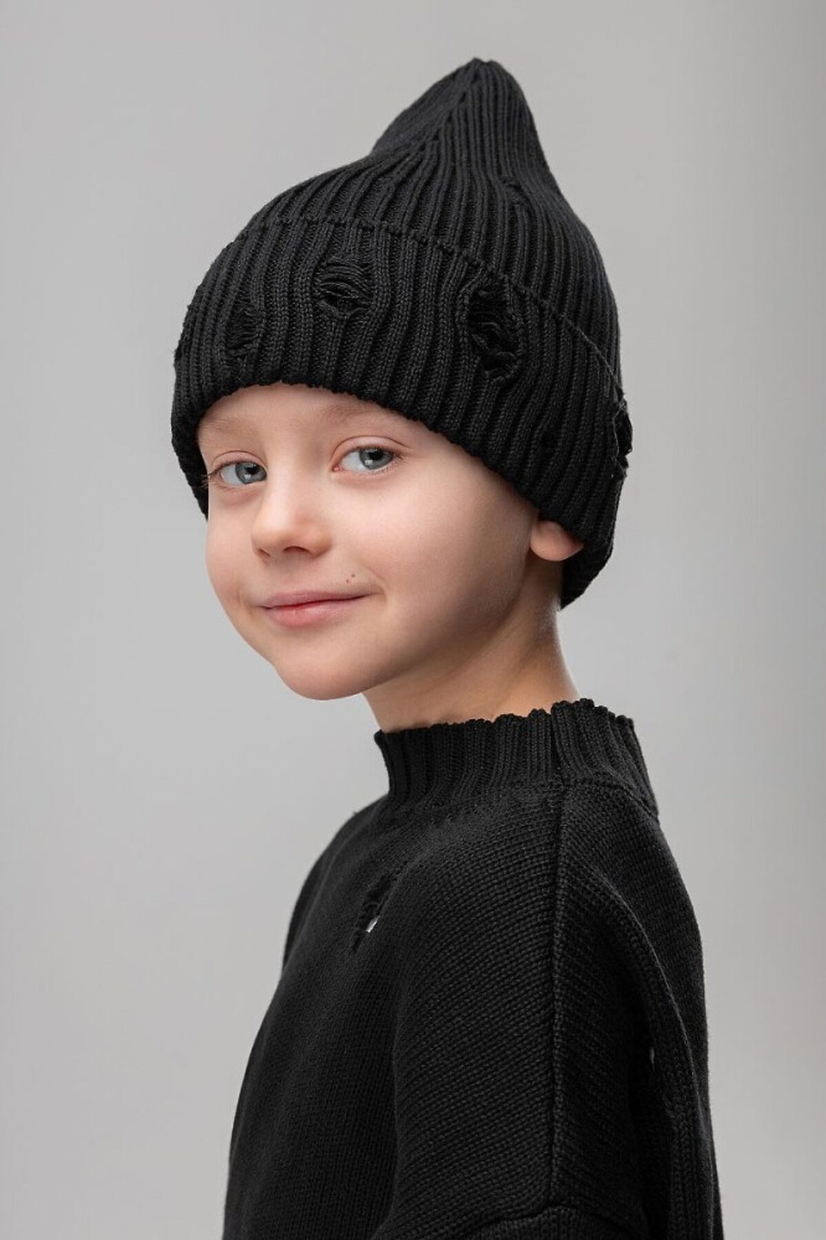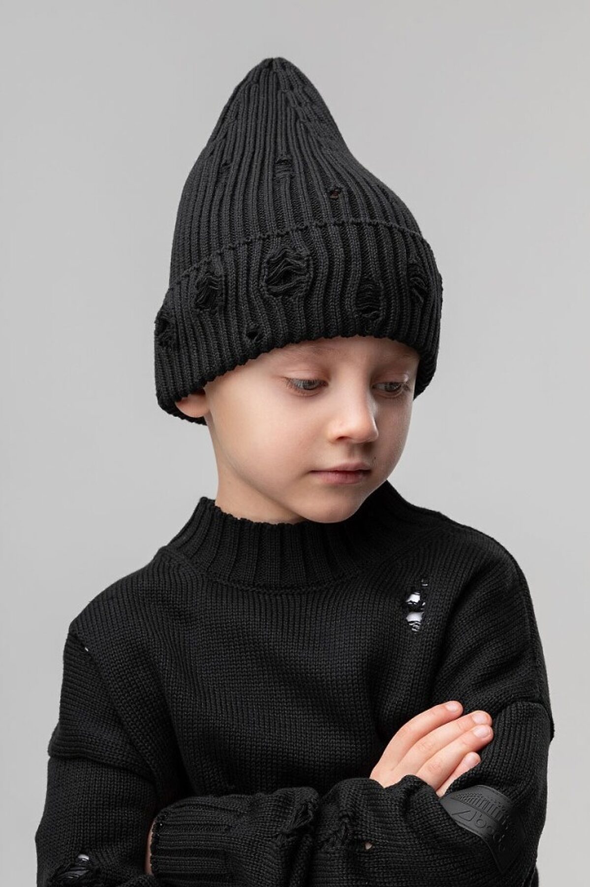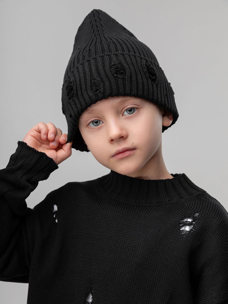 Шапка вязаная "рваная" 10-413MU; черный