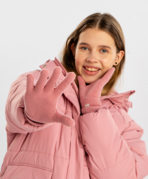 цветРозовый90% акрил/10% нейлон Акрил Перчатки вязаные розовые для девочки Button Blue