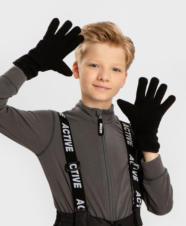 цветЧерныйверх:100% полиэстер; подкладка:95% хлопок/5% эластан Полиэстер Перчатки флисовые черные детские Button Blueфлис/ подкладка трикотаж
