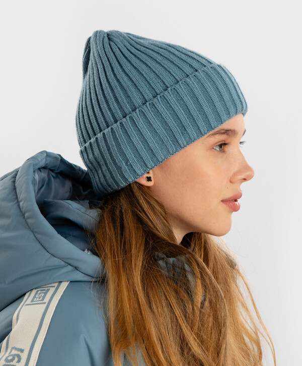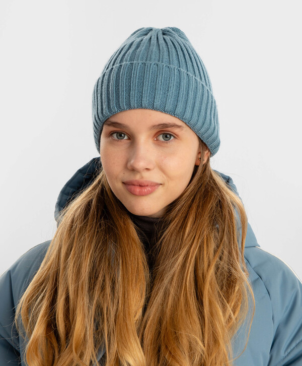 цветГолубой50% вискоза/28% полиэстер/22% нейлон Акрил Шапка детская вязаная с отворотом голубая Button Blue5GG