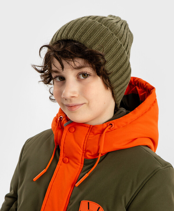 455 р. 650 р. Шапка вязаная с отворотом хаки детская Button Blue
