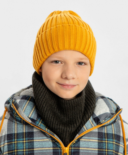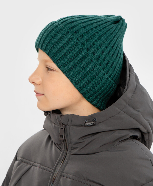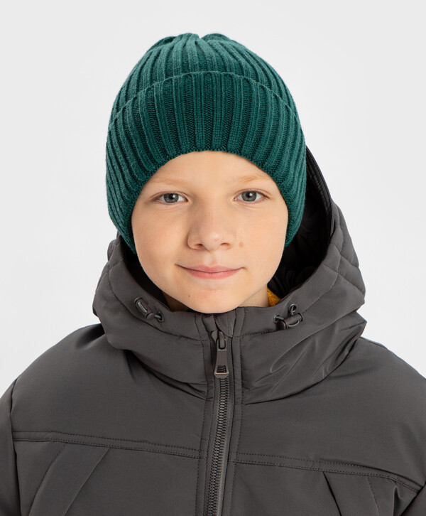 цвет50% вискоза/28% полиэстер/22% нейлон Хлопок Шапка вязаная с отворотом зеленая детская Button Blue5 гейдж/ без подкладки