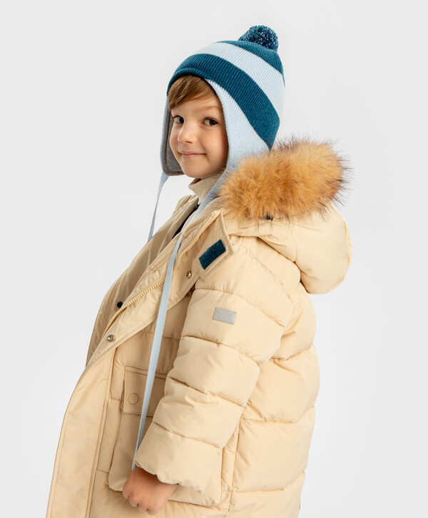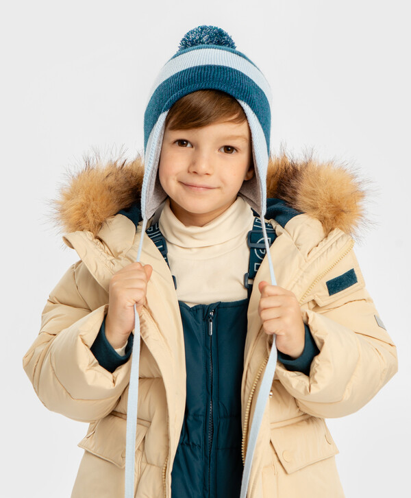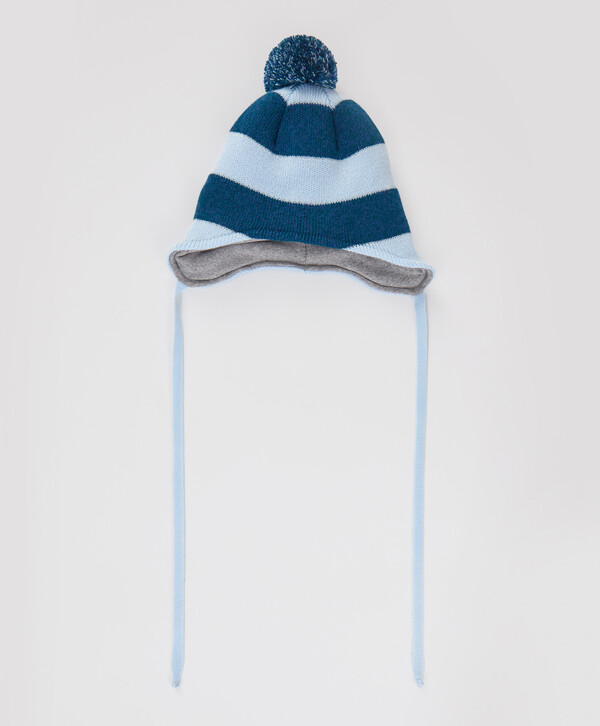 525 р. 750 р. Шапка бини с ушками на завязках и с помпоном мультицвет для мальчика Button Blue