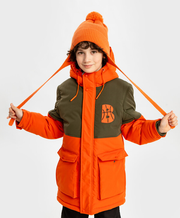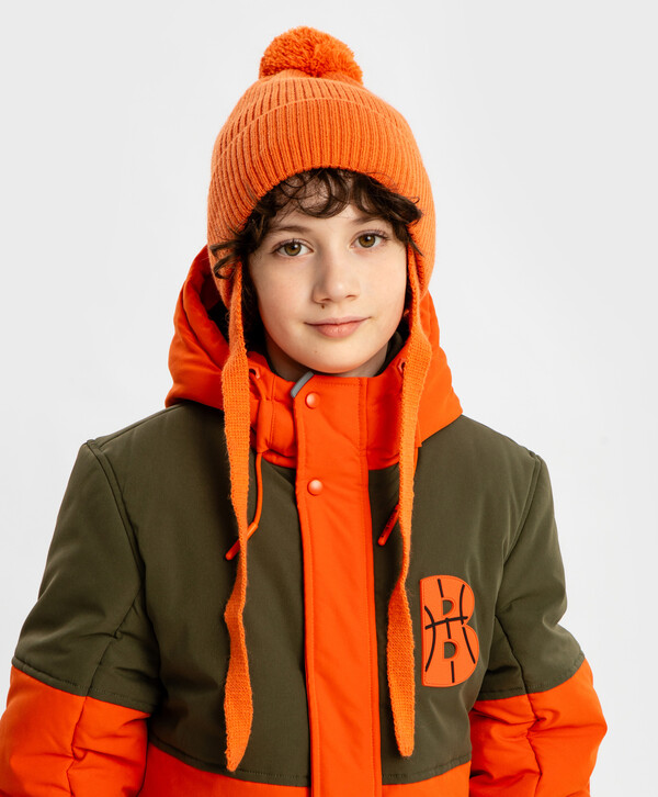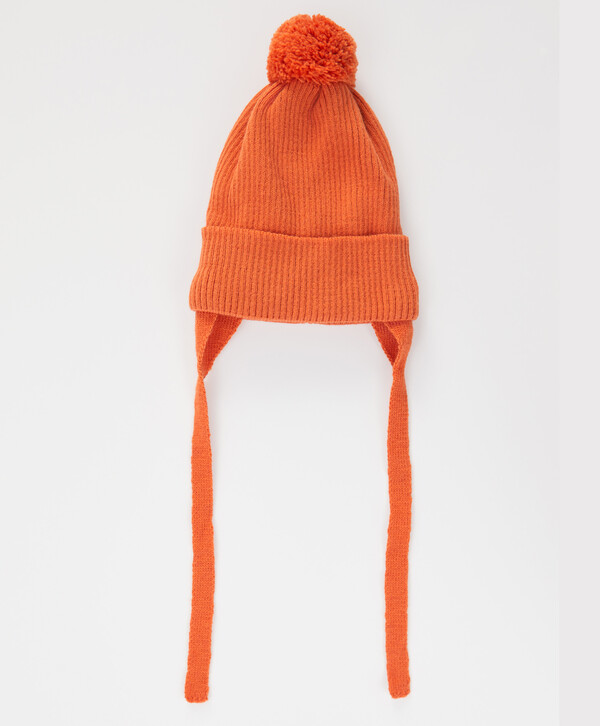 525 р. 750 р. Шапка бини с ушками на завязках и с помпоном утепленная оранжевая детская Button Blue