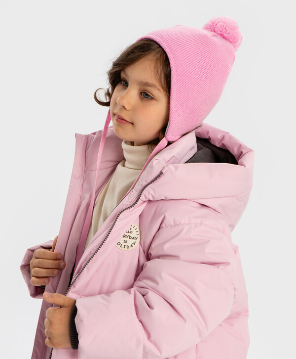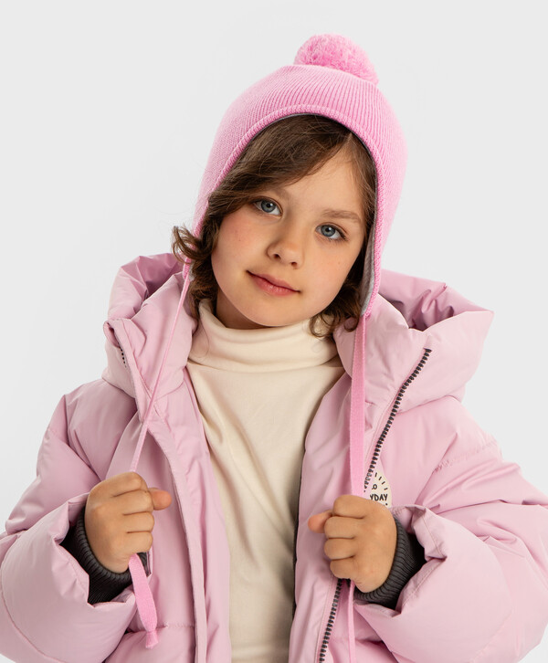 525 р. 750 р. Шапка на завязках с помпоном утепленная розовая для девочки Button Blue