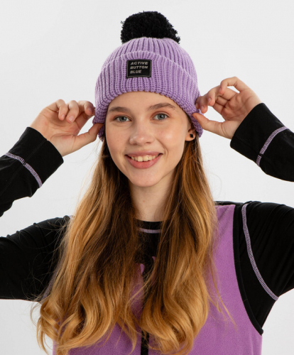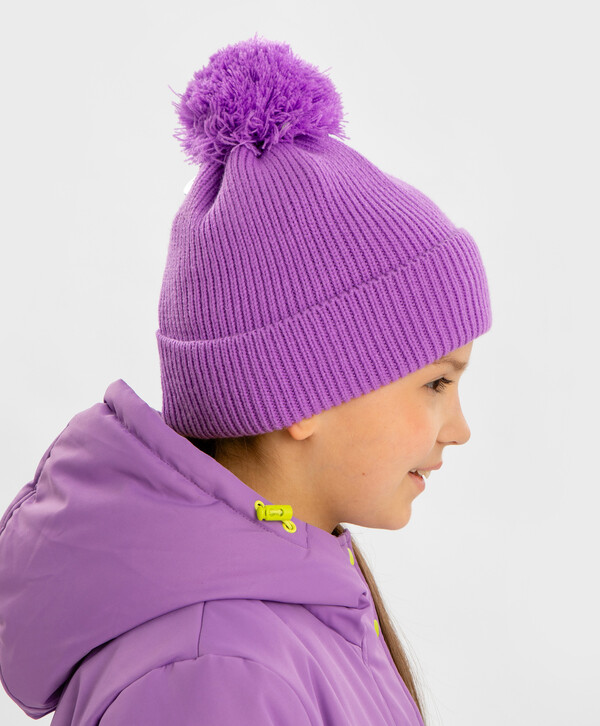 цветверх:100% акрил; подкладка:100% полиэстер Акрил Шапка с помпоном утепленная фиолетовая для девочки Button Blue7 GG