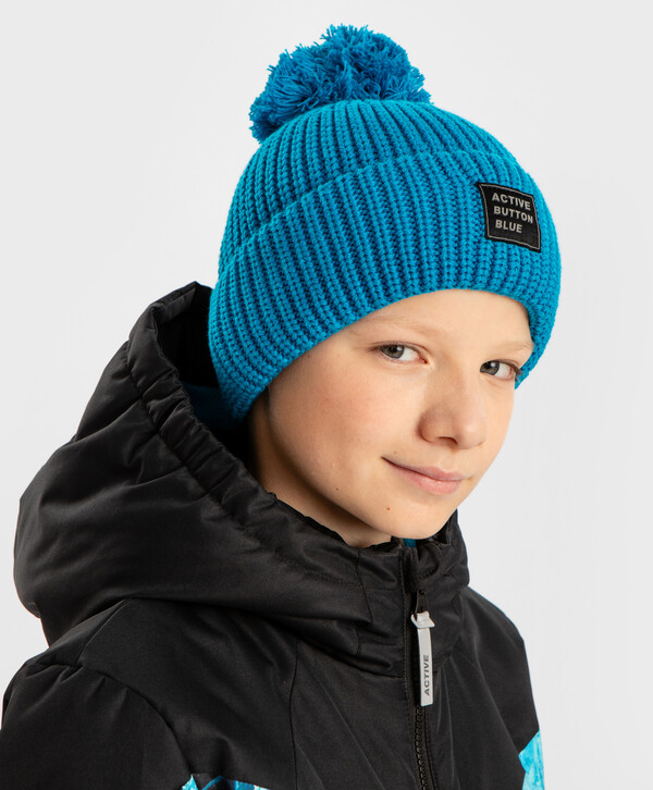 цветСиний50% хлопок/50% акрил Хлопок Шапка с помпоном утепленная синяя для мальчика Button Blue5 g-g/без подкладки