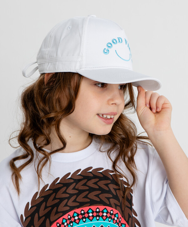 цветБелыйверх:100% хлопок; подкладка:100% хлопок Хлопок Бейсболка с принтом для девочки белая Button Blue