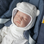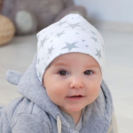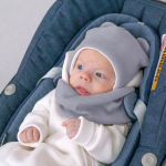 Широкий трикотажный манжет плотно обхватывает головку малыша.