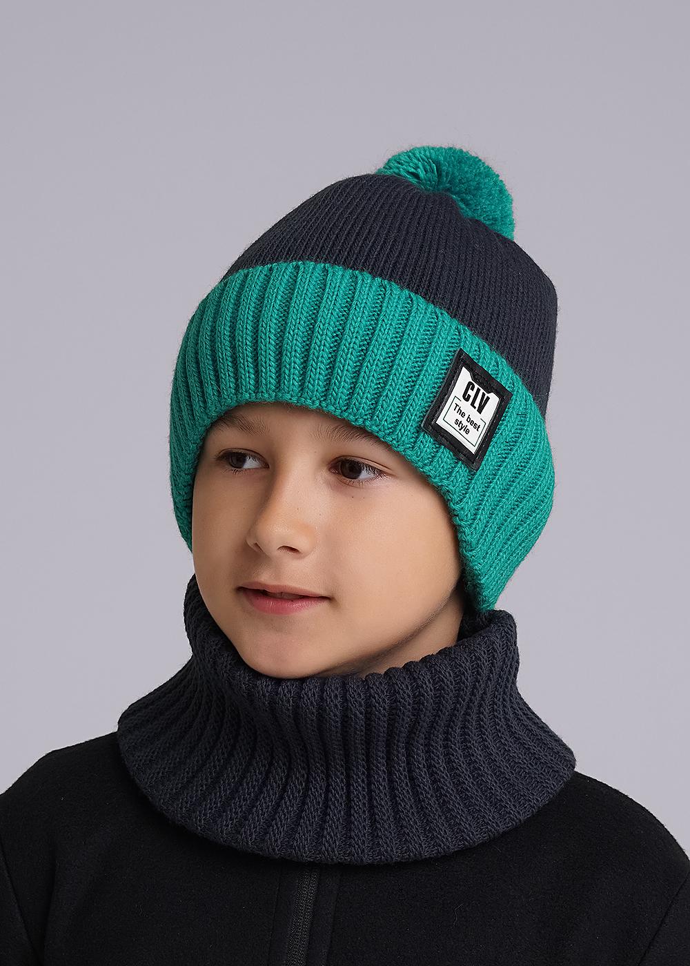 CLE 433849ак флис Шапка детская 433849ак флис т.зелёный/чёрный
