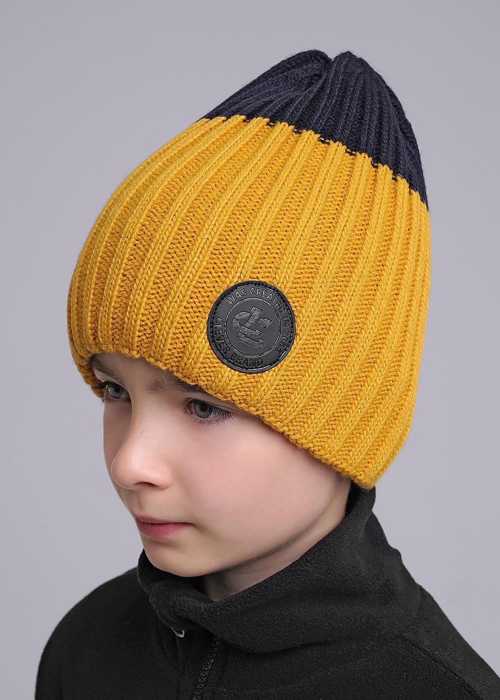 Ст.цена 470р CLE 444215ап Шапка детская для мальчика 444215ап горчичный/т.синий