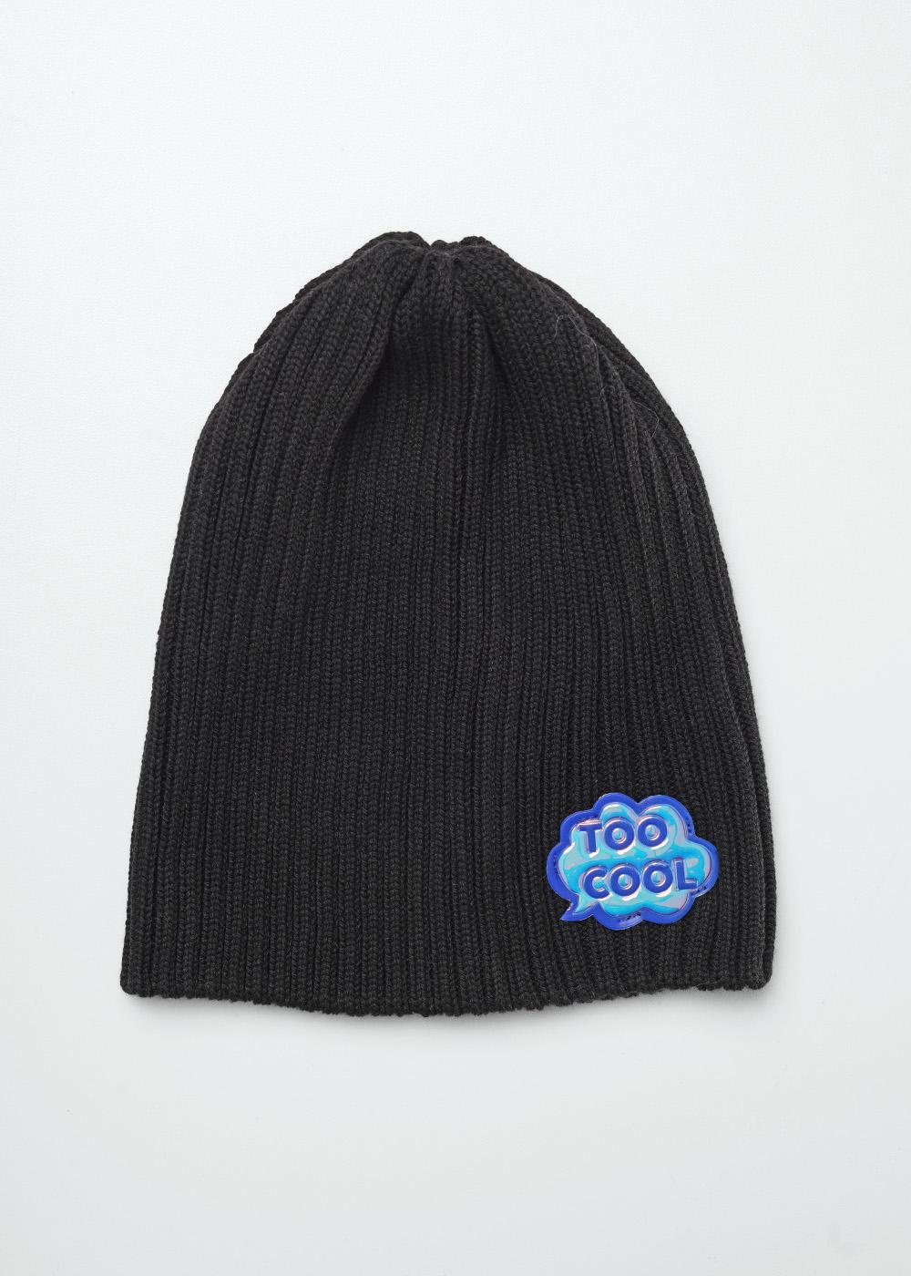 Шапка детская однослойная без отворота. Связана из хлопка с акрилом. Декорирована стильной нашивкой. Подойдёт для весенне - осеннего периода. Размер 54-56