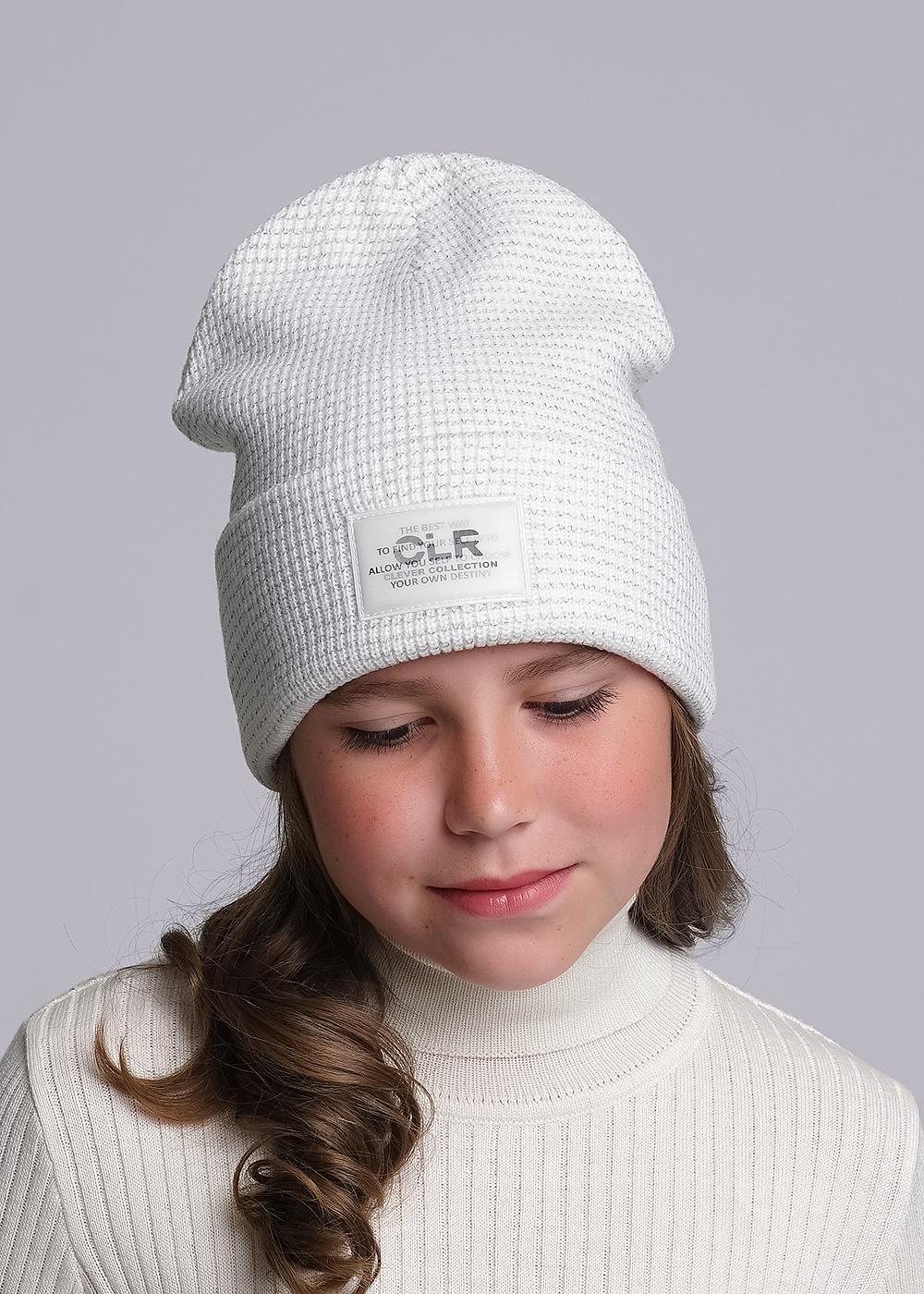 Шапка детская двойная c отворотом, декорирована стильной нашивкой в центральной части. Отлично подойдёт для холодной осени, тёплой зимы.