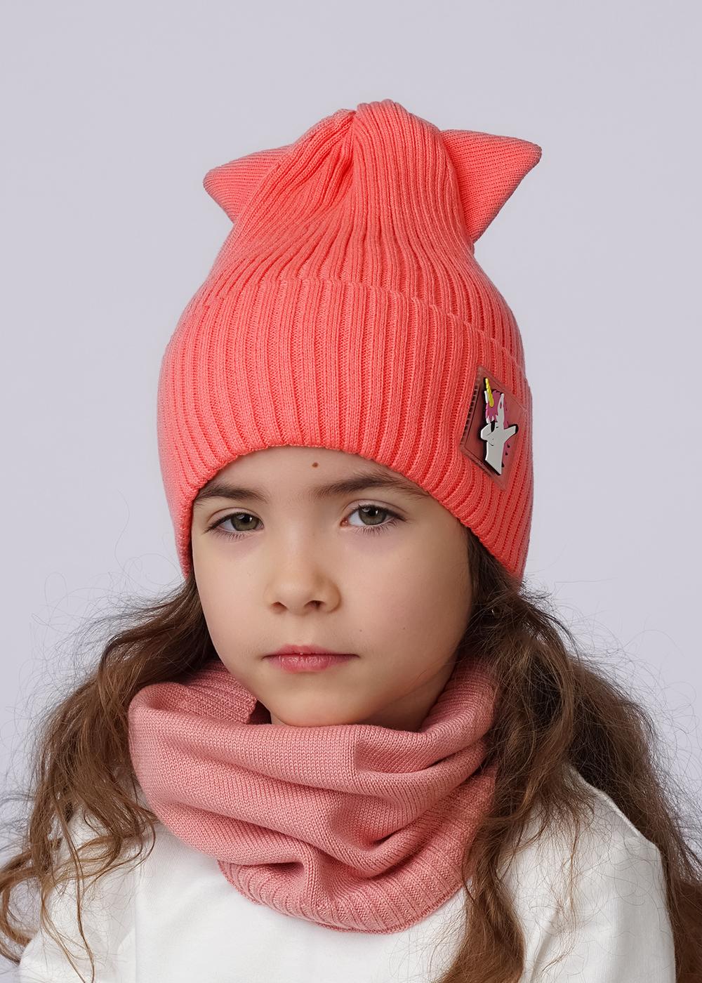 Детская шапка с отворотом, декорирована ушками и силиконовой нашивкой. Идеально подойдёт для осенне- весеннего сезона.