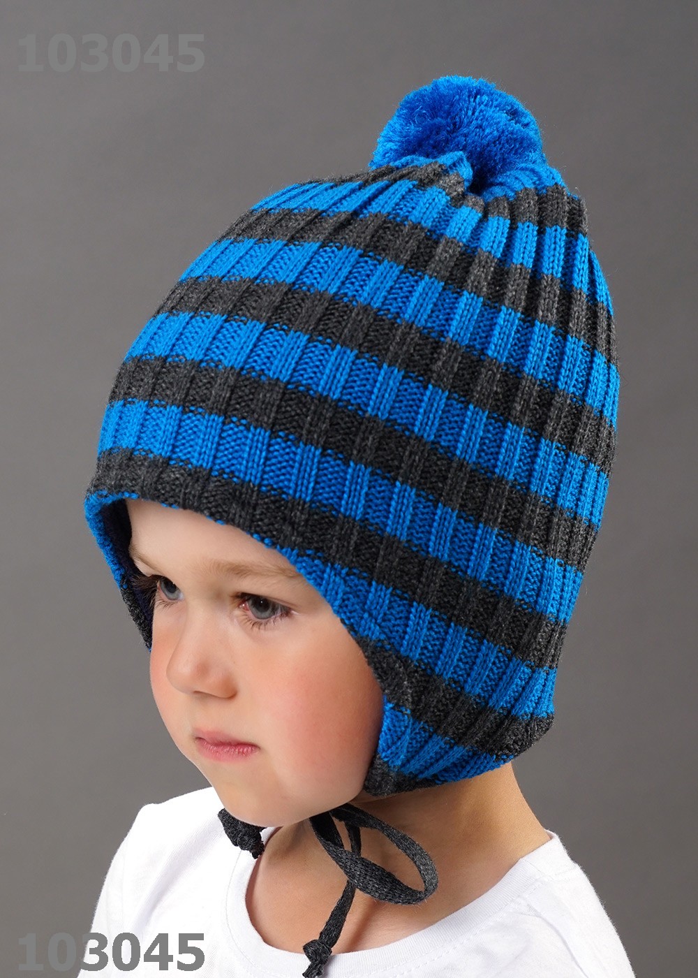 "Описание: Шапка с цельнокроеными ушками на завязках, выполнена ластичным переплетением, декорирвоана ниточным помпоном. Модель на синтепоне с флисовым подкладом, в области ушей с дополнительным утеплением - ветрозащитной мембраной.