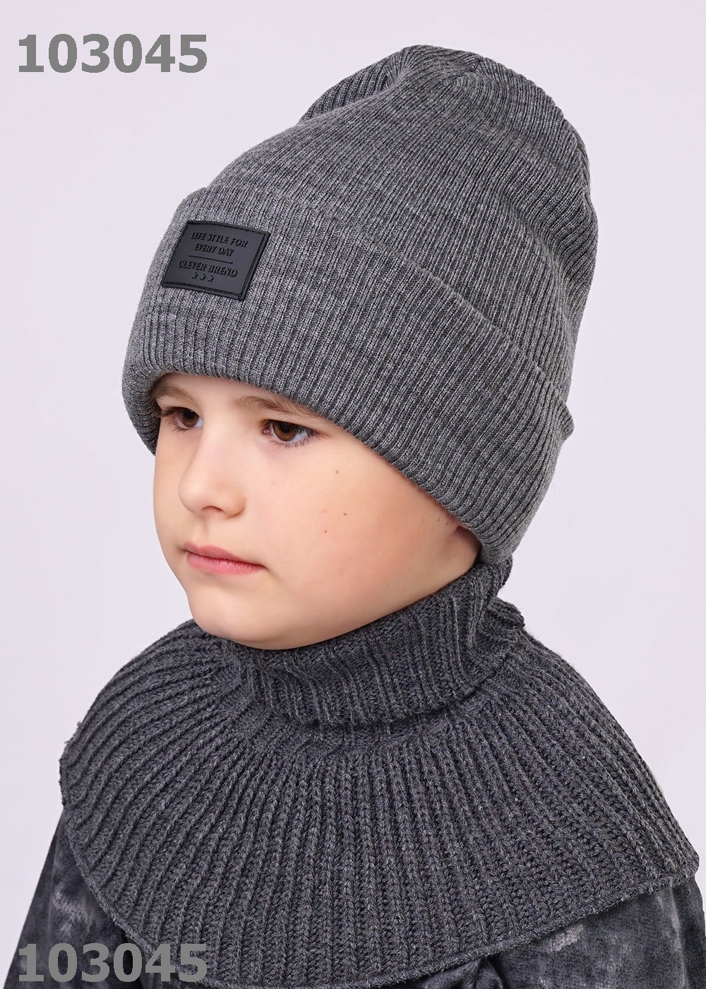 "Описание: Стильная детская двойная шапка с отворотом, декорирована силиконовой нашивкой в центральной части. Идеально подойдёт для холодной осени- тёплой зимы. Размер ua соответствует размеру 54-56.