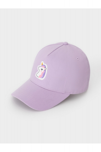 Кепка для девочки из натурального хлопка. Спереди украшена оригинальной нашивкой. Регулируется по ширине головы и фиксируется на затылке с помощью металлического зажима.