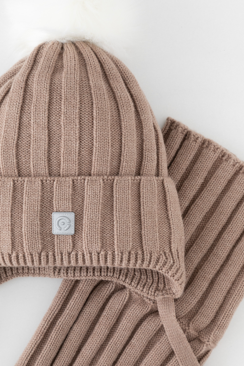 шапка: 70% акрил, 30% шерсть; подклад: 100% хлопок; утеплитель: 100% полиэстер; снуд: 70% акрил, 30% шерсть