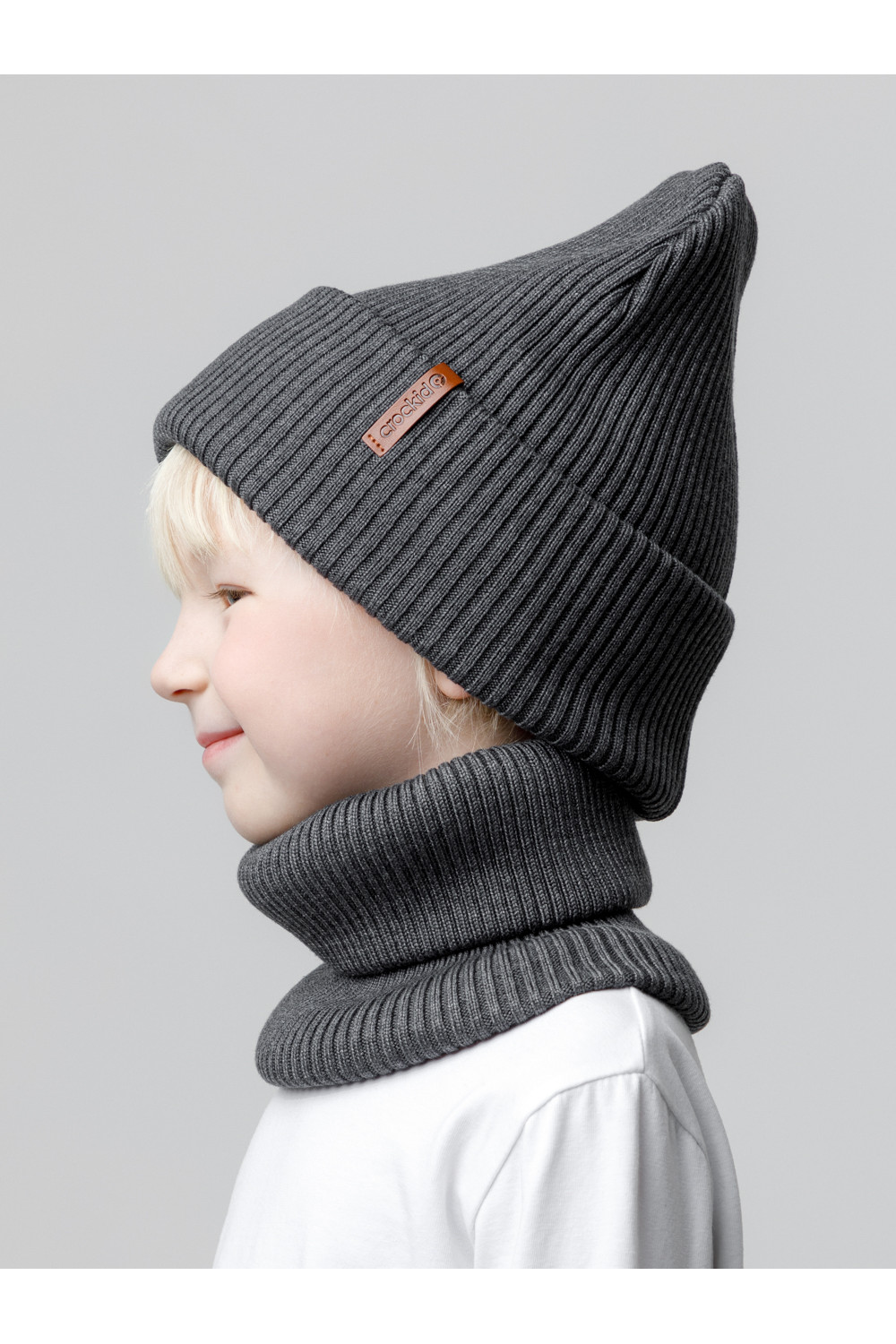 Комплект демисезонный из шапки с отворотом и снуда. Связан из высококачественного хлопка и выполнен переплетением ластик. Комфортно прилегает, обеспечивая защиту от холода и хороший теплообмен. Изделия хорошо переносят многократные стирки, сохраняя цвет и форму.