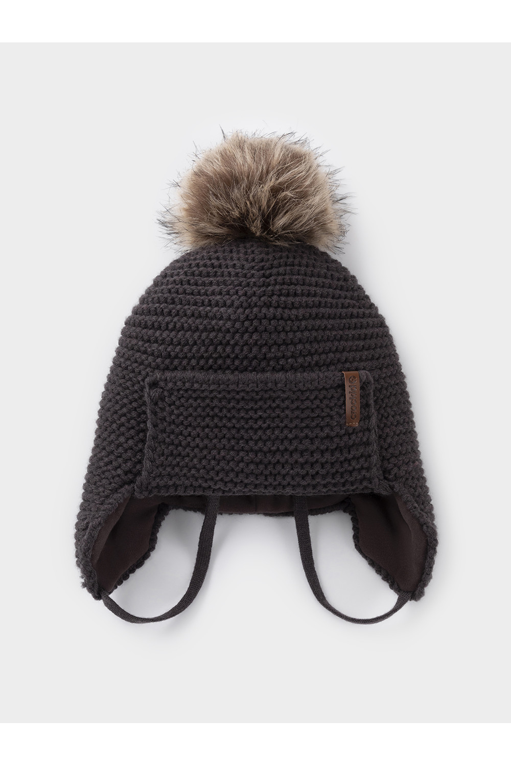 Шапка из полушерсти на завязках с синтепоновым утеплителем. Подклад из натурального хлопка. Полностью закрывает голову, уши и шею, защищая ребёнка от холодного воздуха и ветра. На макушке помпон. Изделие сохраняет форму и стойкий цвет после многочисленных стирок.
