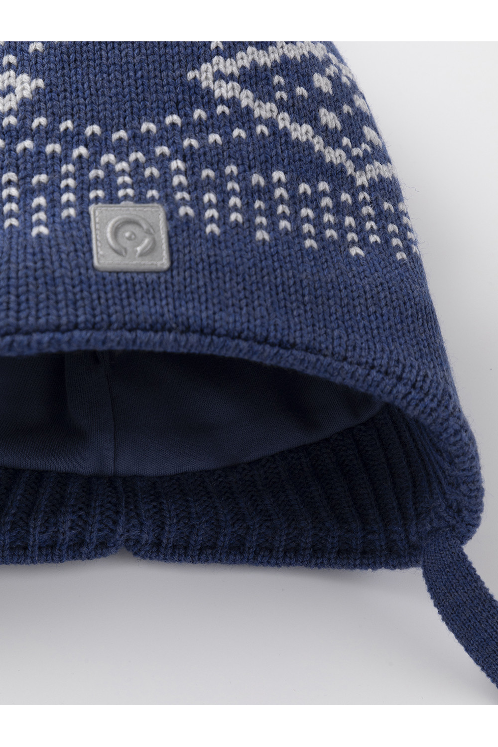 Шапка из полушерсти на завязках с синтепоновым утеплителем. Подклад из натурального хлопка. Полностью закрывает голову, уши и шею, защищая ребёнка от холодного воздуха и ветра. На макушке помпон. Изделие сохраняет форму и стойкий цвет после многочисленных стирок.