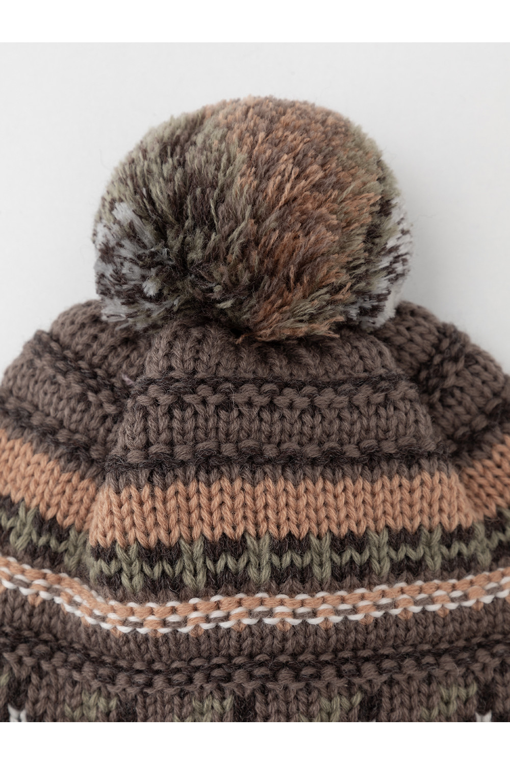 Тёплая зимняя шапка с подкладом из хлопкового трикотажа. Верх выполнен из полушерстяной пряжи. На макушке помпон.