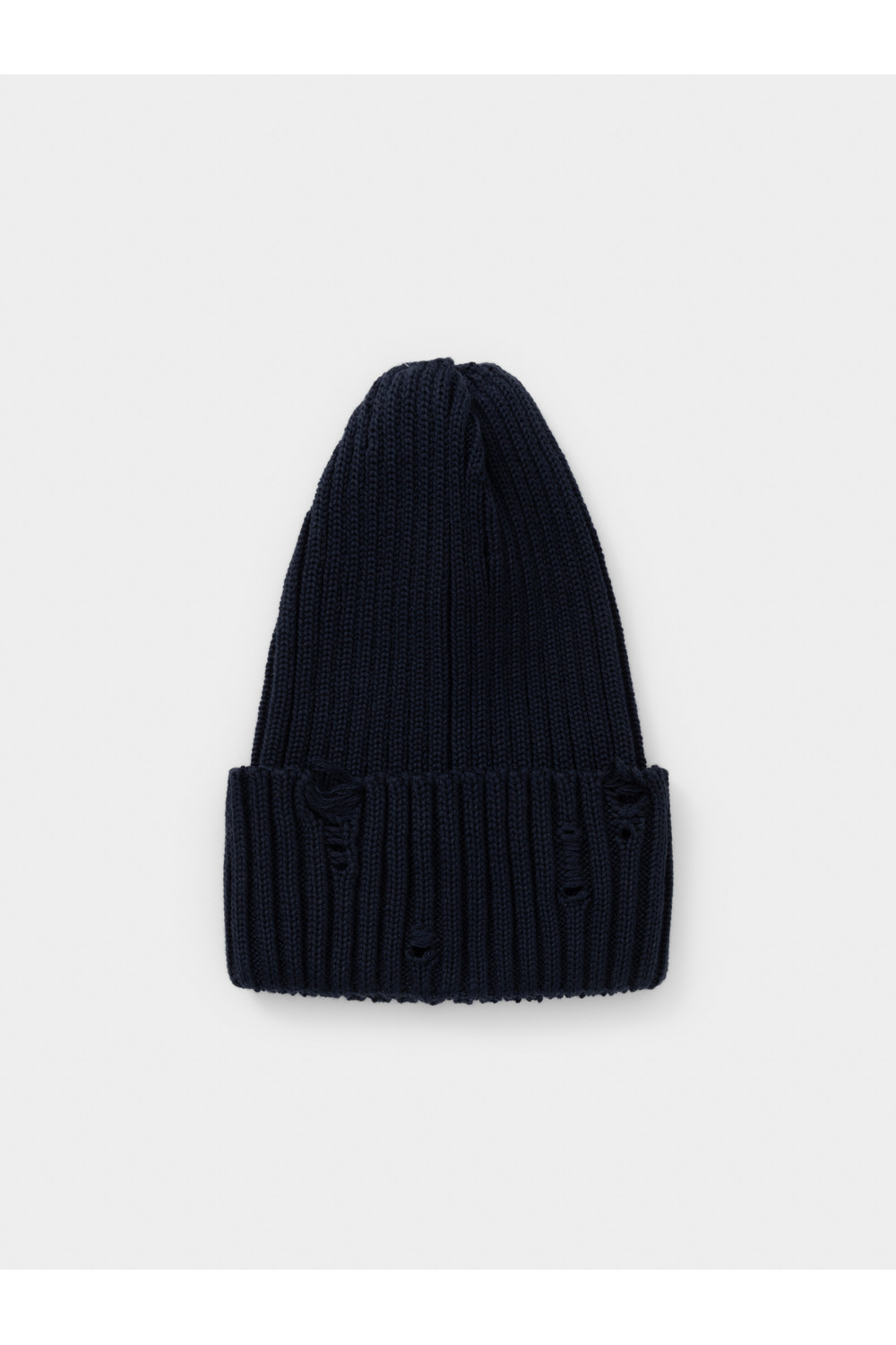 Стильная демисезонная шапка с декоративными разрывами. Изготовлена из высококачественной пряжи, в состав которой входят хлопок и акрил. Комфортно прилегает к голове, обеспечивая защиту от холода и хороший теплообмен. Изделие хорошо переносит многократные стирки, сохраняя цвет и форму.