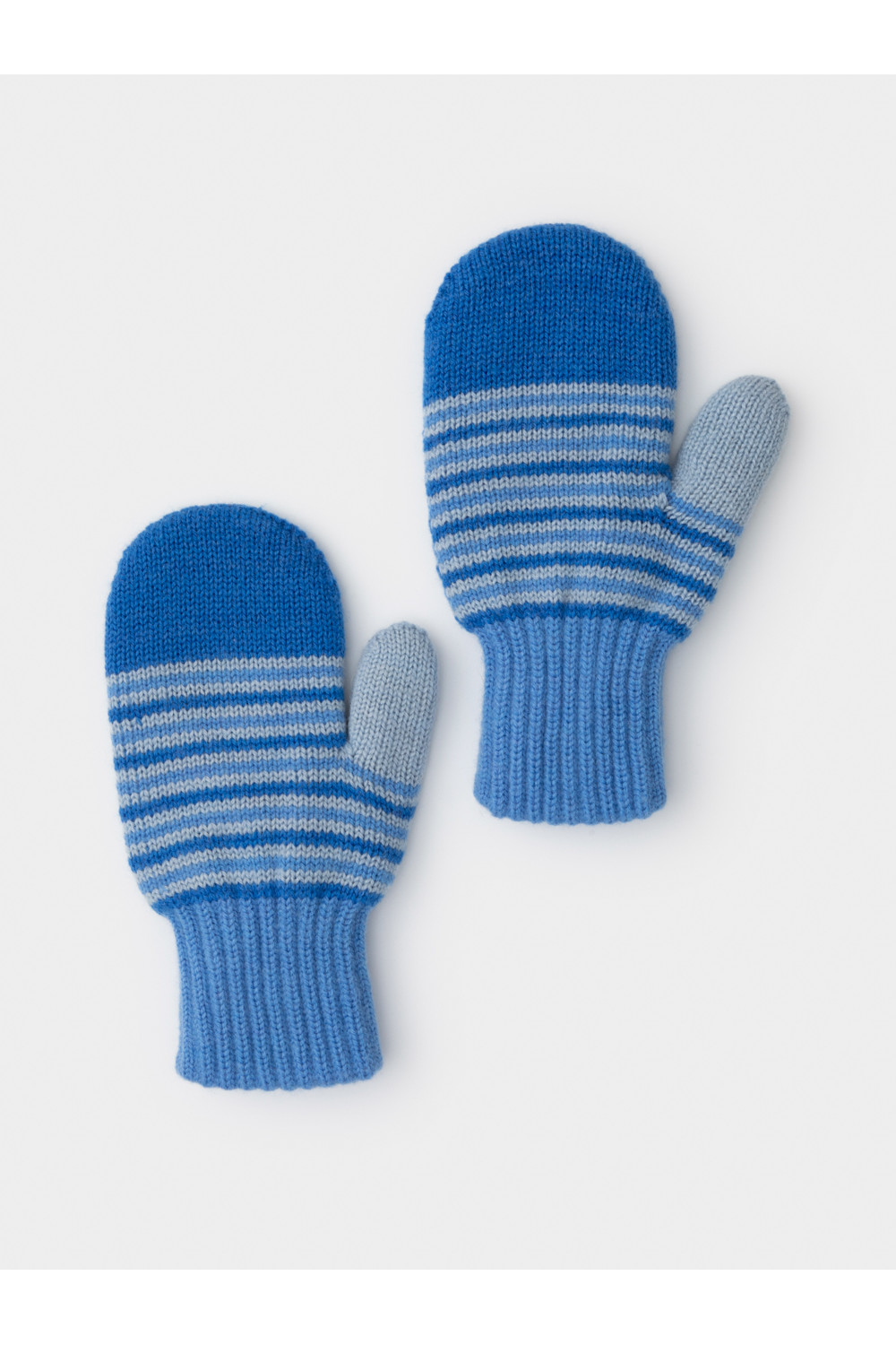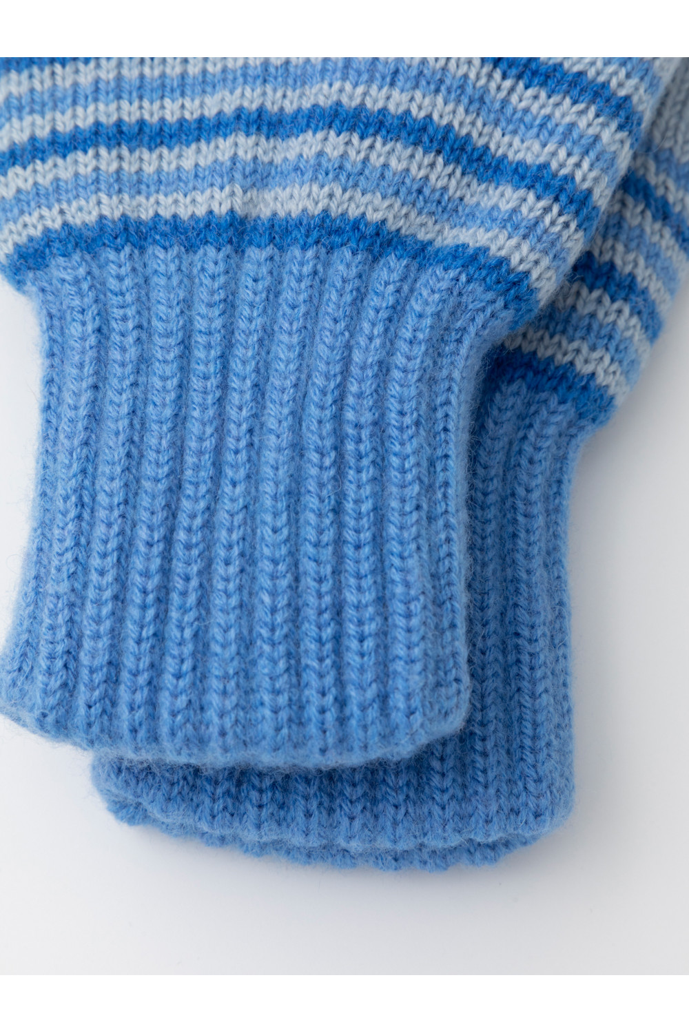 Варежки в полоску из полушерстяной пряжи. Эластичные манжеты фиксируют перчатку на руке.