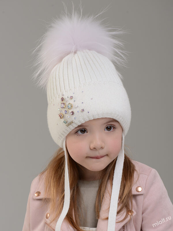 Дополнение: Зимняя шапка на подкладке с утеплителем. Отворот, завязки. Помпон натуральный на кнопке. Декор- стразы, камни в оправе